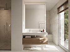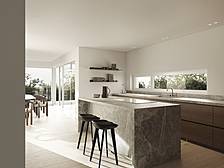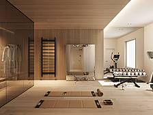 - Sanitärbereich mit Armaturen von Dornbracht, großformatigen Feinsteinfliesen und hochwertiger Keramik von Villery & Boch